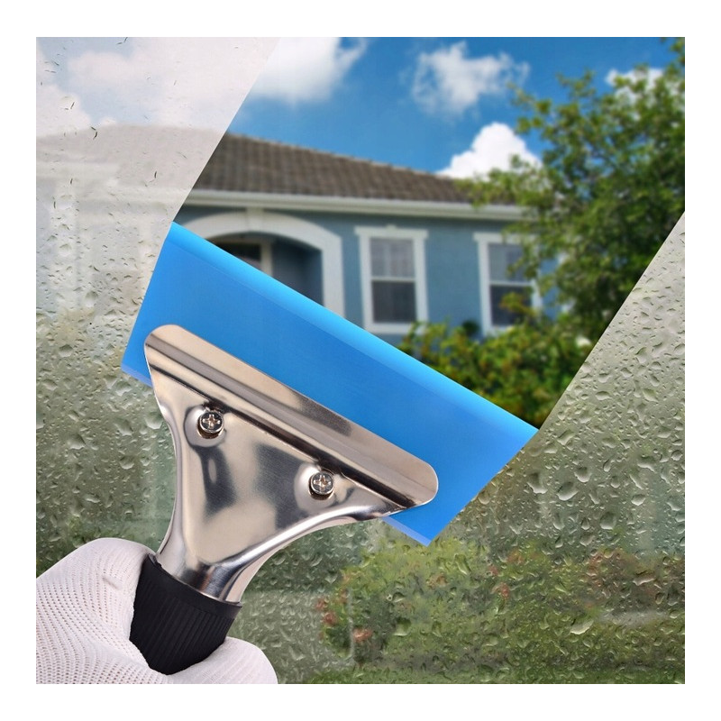 Użyj odpowiedniej rakli (szerokiej, mini lub filcowej), dociskając folię z wnętrza na zewnątrz, aby usunąć wodę i powietrze.
