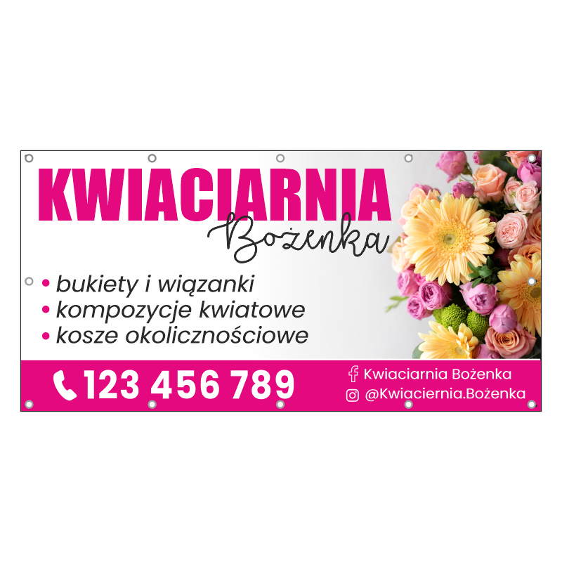 Baner reklamowy z gotowym wzorem dla kwiaciarni 2×1 m