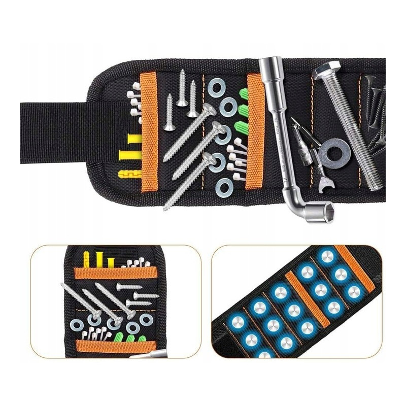 Opaska magnetyczna na nadgarstek, idealna dla majsterkowiczów oraz profesjonalistów w swoim fachu. Z mocnymi magnesami zapewnia nie tylko wygodę pracy poprzez trzymanie narzędzi i akcesoriów, ale także organizację dzięki dwóm kieszeniom na niemetalowe przedmioty. Wyjątkowo silne magnesy oraz trwałe nylonowe włókno zapewniają solidność i wygodę użytkowania. Uniwersalny rozmiar z regulacją za pomocą rzepa oraz wewnętrzna siateczka dla swobodnego przepływu powietrza sprawiają, że ta opaska to nieodzowny element zapewniający komfort pracy bez zbędnego przerywania. Pozwól sobie na szybsze i bardziej efektywne majsterkowanie dzięki opasce magnetycznej na nadgarstek!
