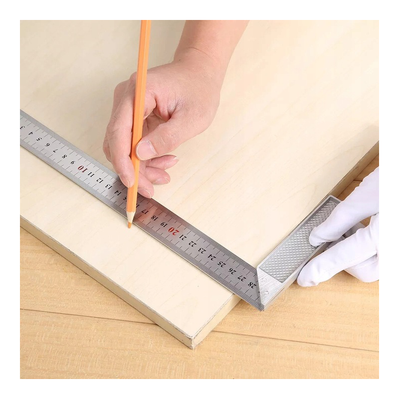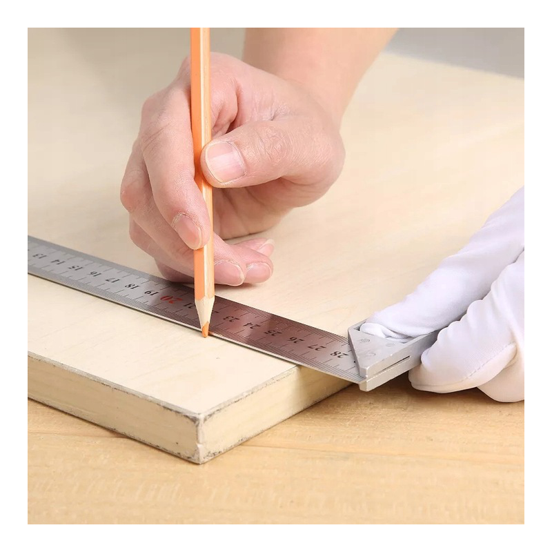 Przyłóż kątownik do krawędzi elementu, tak aby oba ramiona przylegały precyzyjnie.