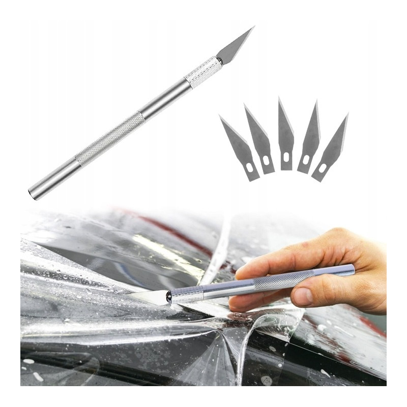 Cięcia przy krawędziach folii przy oklejeniu pojazdów oraz przy aplikacji reklam wewnętrznych i zewnętrznych.
