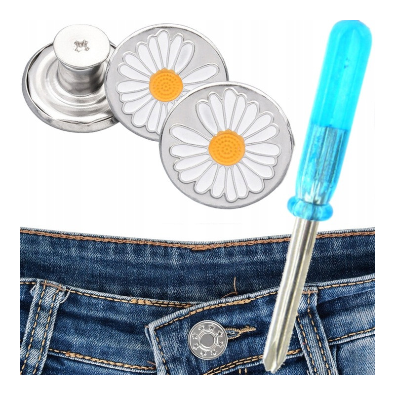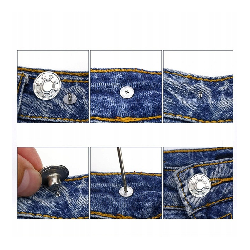 Praktyczne rozwiązanie dla każdego, kto chce szybko i łatwo naprawić urwany guzik w spodniach, bez potrzeby wizyty u krawca. Metalowy guzik z gwintem pozwala na błyskawiczne zamocowanie w miejscu starego guzika – wystarczy zrobić niewielki otwór i przykręcić go od spodu za pomocą dołączonego śrubokręta.