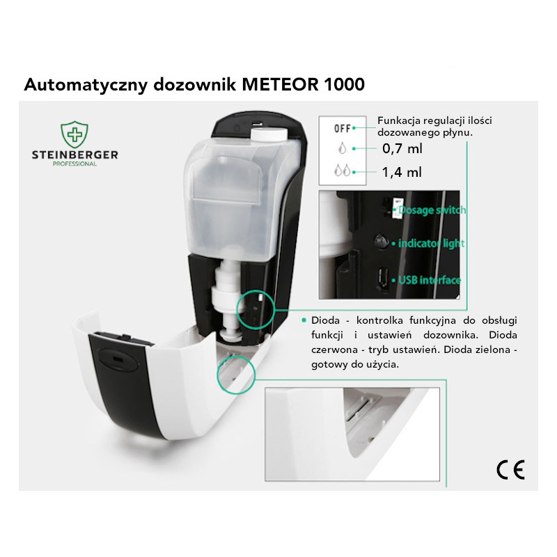 Dozownik Meteor 1000 może zapobiec zamknięciu firmy na kwarantannie. Gotowa stacja do dezynfekcji dłoni. Zasilanie z sieci lub na baterie A. Poinformuj o tym obowiązku naklejką na drzwiach, która również dla Ciebie zaprojektowaliśmy. Największe zalety: