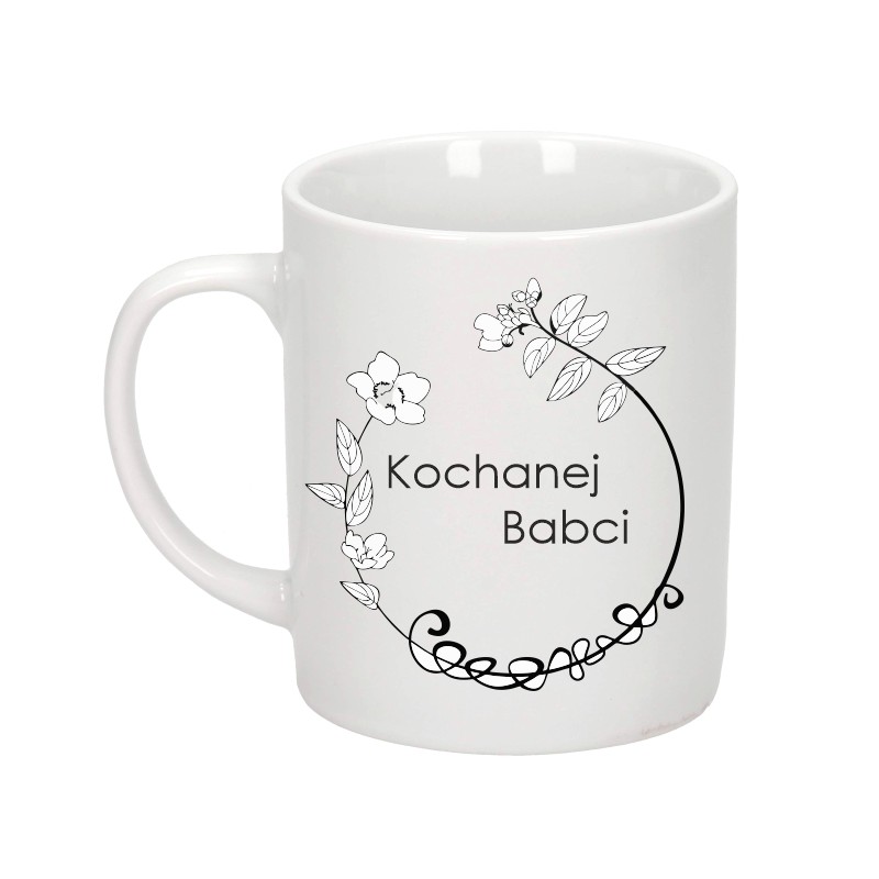 Opinie (0) Kubek biały 300 ml 9,5x8 cm z nadrukiem kwiatowym Babcia z imieniem – personalizowany prezent40,00 zł