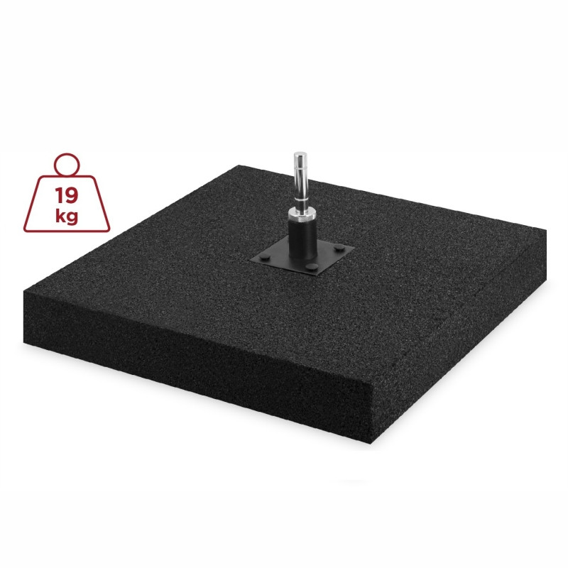 Ciężka podstawa gumowa z rotatorem to rozwiązanie zapewniające pełne bezpieczeństwo i funkcjonalność w ekspozycjach outdoorowych. Rotator ze stali nierdzewnej gwarantuje lekką, płynną pracę masztu, dzięki czemu flaga ustawia się zawsze zgodnie z kierunkiem wiatru, zwiększając widoczność reklamy. Wytrzymała guma stabilizuje konstrukcję, chroni przed przesuwaniem i tłumi drgania, a spora waga podstawy eliminuje konieczność dodatkowego dociążania.