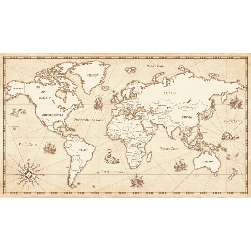 • Drewniany obraz mapa świata Retro 30×45 cm 3 mm sklejka brzozowa – dekoracja wnętrz