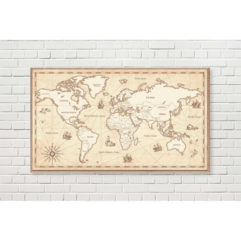 Drewniany obraz mapa świata Retro 30×45 cm 3 mm sklejka brzozowa – dekoracja wnętrz