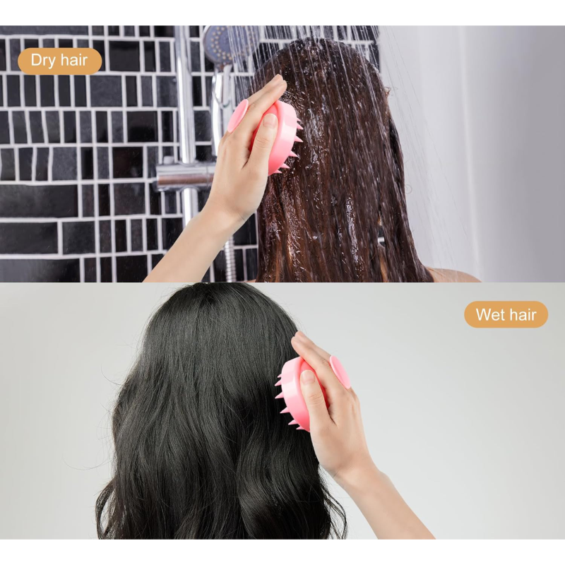 Elastyczne silikonowe wypustki zapewniają delikatny, ale skuteczny masaż skóry głowy.