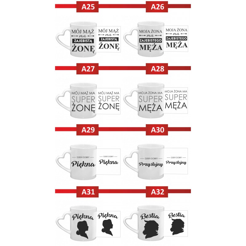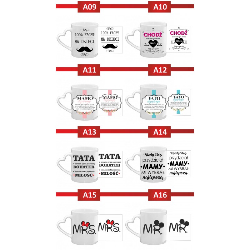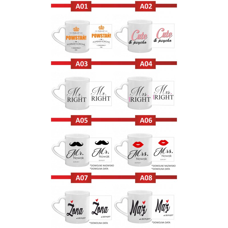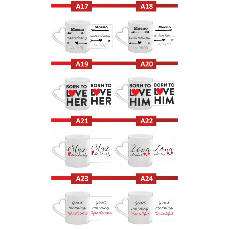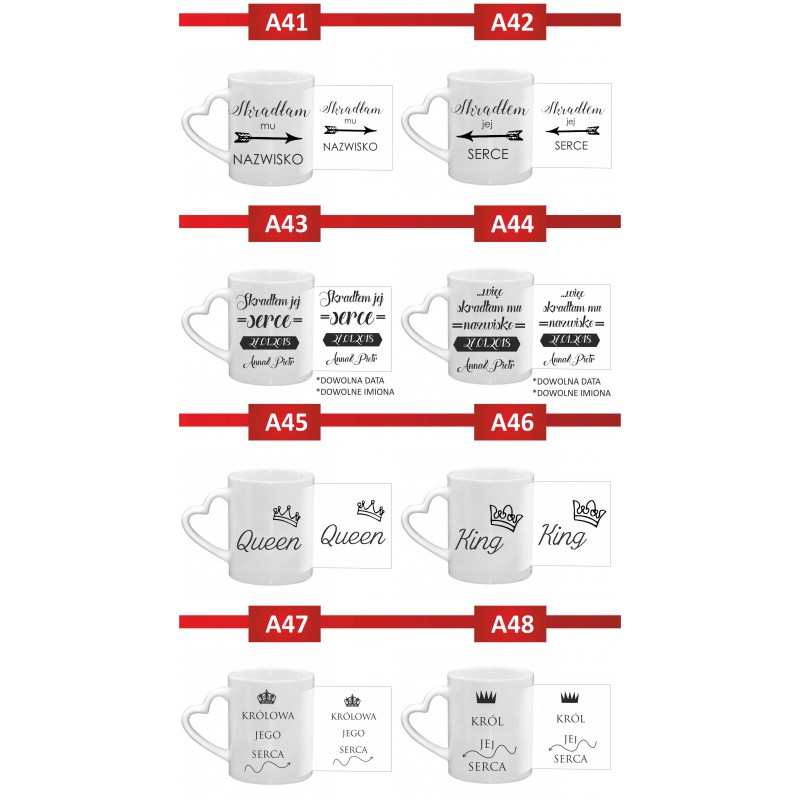 Opinie (0) Kubek biały z uchem serce 300 ml 9,5x8 cm z nadrukiem Para z imionami – prezent dla zakochanych45,00 zł