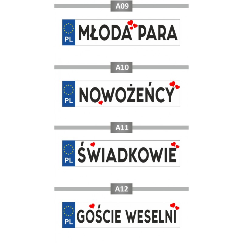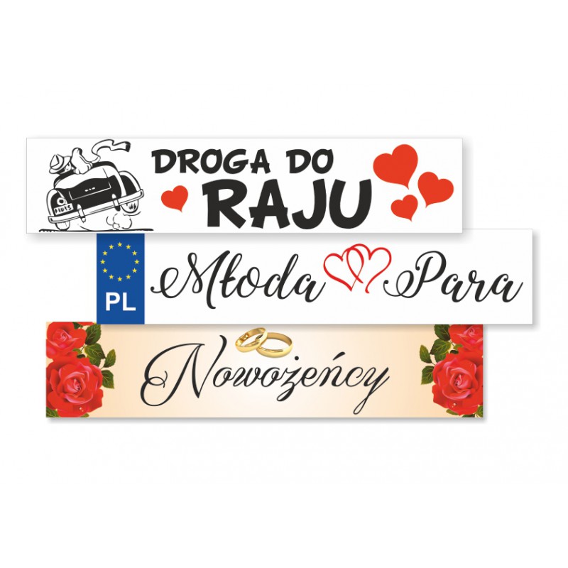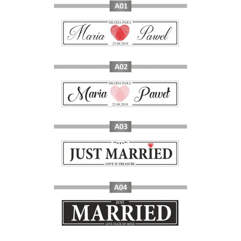 Naklejka samoprzylepna tablica rejestracyjna 52x11,4 - trwała dekoracja samochodu ślubnego