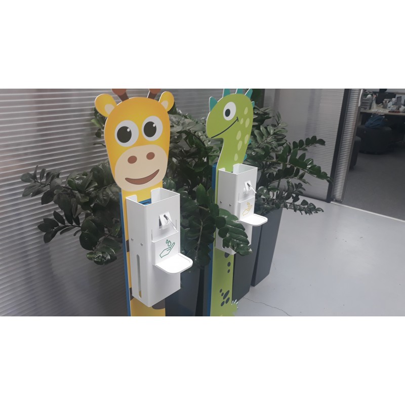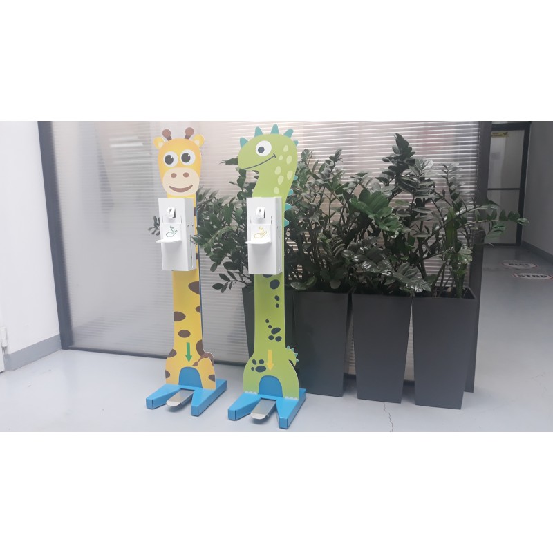 Ten model stacji dezynfekcyjnej został przygotowany specjalnie do użytku przez dzieci. Dozownik został umieszczony na wysokości odpowiadającej wzrostowi dziecka, więc mali użytkownicy stacji dezynfekcyjnej nie powinni mieć żadnego problemu z jej użytkowaniem. Dodatkowo stacja dezynfekcyjna dla dzieci posiada kolory przyjazne dzieciom oraz wzór w bajkowym stylu.