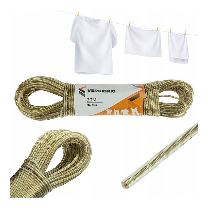 Uniwersalna długość — 30 m linki pozwala na wygodne rozwieszenie dużej ilości prania; można ją również przyciąć na dowolną długość.