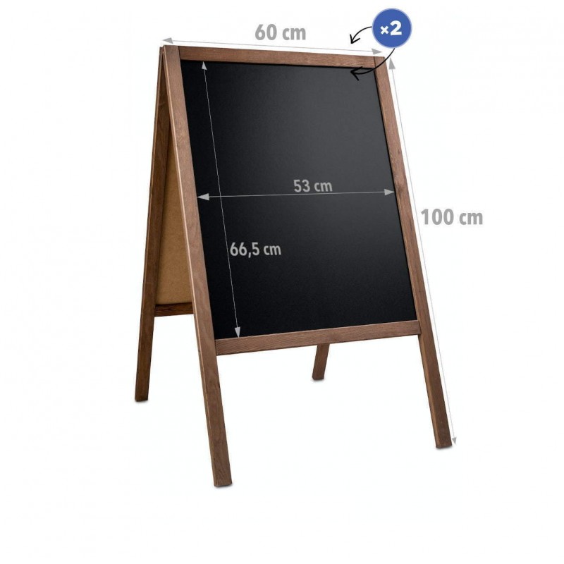 Drewniany potykacz kredowy to elegancki stojak reklamowy, który doskonale łączy naturalny wygląd z praktycznością. Naturalna sosna i bejcowany, drewniany profil dodają mu ciepła i stylu, co sprawia, że wpisuje się w wystrój kawiarni, restauracji i butików. Powłoka kredowa na płycie HDF umożliwia dowolne kreowanie treści – wystarczy użyć tradycyjnej kredy lub kolorowych markerów, a napisy można łatwo zmywać i aktualizować. Dzięki dwustronnemu układowi i zabezpieczającemu łańcuszkowi, potykacz jest stabilny i wytrzymały – a przy niedużej wadze, niezwykle wygodny w transporcie i ustawieniu.