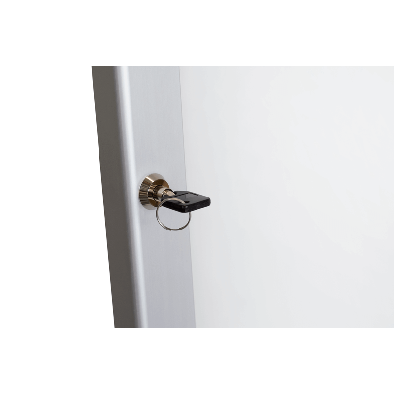 Gablota ogłoszeniowa wyróżnia się solidną konstrukcją i wysokim poziomem bezpieczeństwa. Zamek na klucz chroni umieszczone w niej materiały, a aluminiowa rama nadaje nowoczesny wygląd oraz odporność na warunki eksploatacji. Dzięki dużemu formatowi A1 jest doskonała do miejsc wymagających wyraźnej, czytelnej komunikacji.