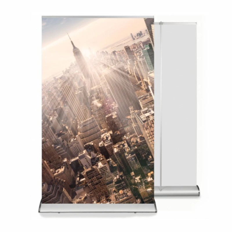Roll‑up Premium to połączenie nowoczesnego designu, najwyższej jakości i trwałości. Solidna, lakierowana kaseta aluminiowa prezentuje się luksusowo i stabilnie utrzymuje wydruk Blockout, który dzięki swojej gramaturze (330 g) i matowej powłoce eliminuje prześwity — kolory są głębokie i żywe. Maszt teleskopowy wraz z zatrzaskową listwą umożliwia szybki montaż bez narzędzi — gotowy do pracy w kilka sekund. Torba transportowa z odpowiednią ochroną sprawia, że transport urządzenia jest bezpieczny i wygodny. To idealne rozwiązanie dla firm oczekujących stojaka reklamowego łączącego estetykę, funkcjonalność i prestiż.