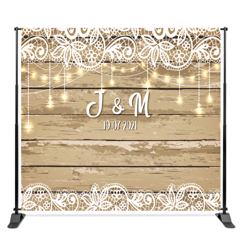 Teleskopowa ścianka banerowa 220x240 cm z inicjałami – tło ślubne