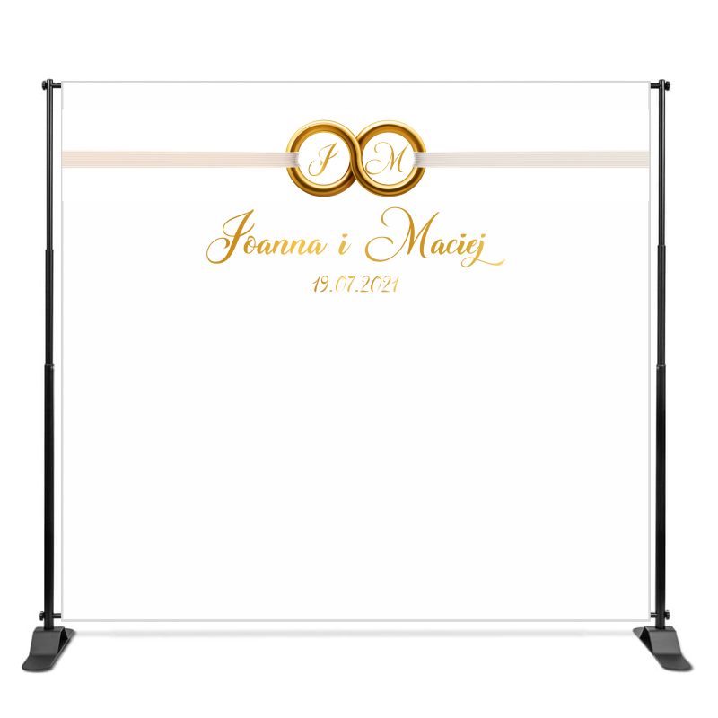 • Teleskopowa ścianka banerowa 220x240 cm z imionami obrączki – tło ślubne