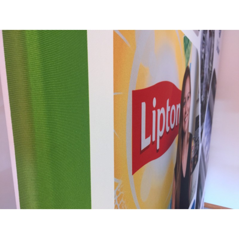 Na stoiskach targowych jako profesjonalne tło prezentacyjne.