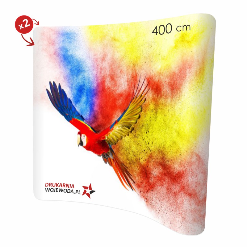 Wymiary ekspozycyjne: grafika o wymiarze 400 × 230 cm, całkowita szerokość łuku 300 cm