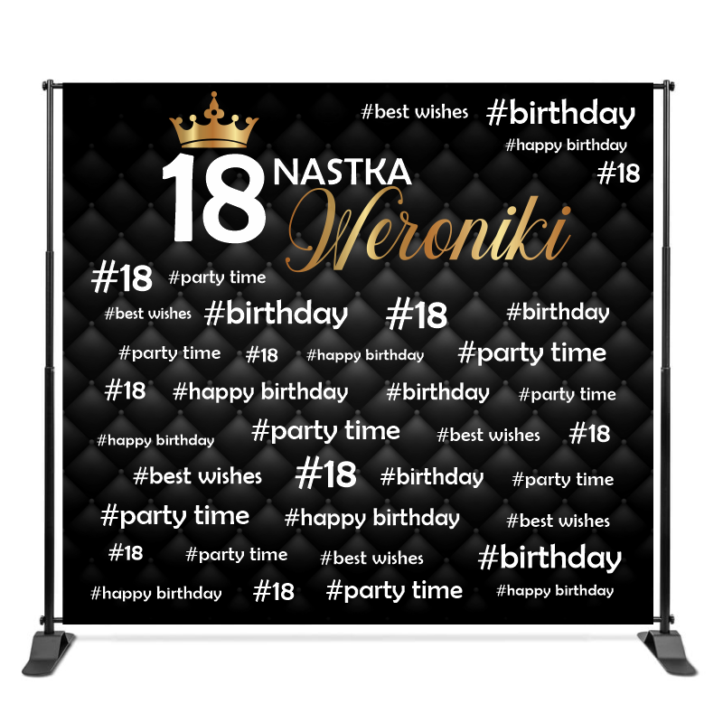 • Teleskopowa ścianka banerowa 220x240 cm z hasztagiem – tło na 18 urodziny