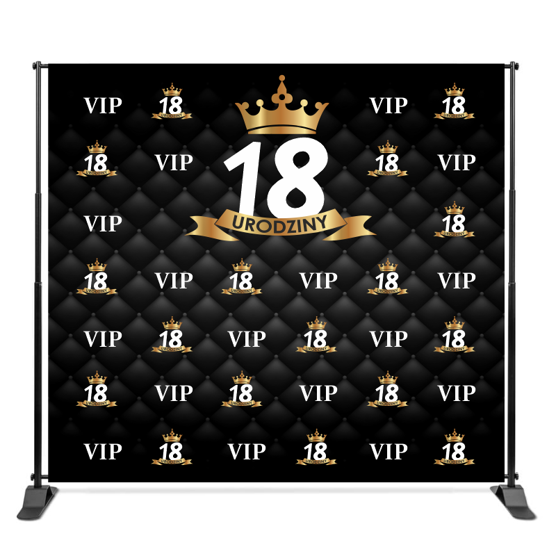 • Teleskopowa ścianka banerowa 220x240 cm z imieniem korona – tło na 18 urodziny