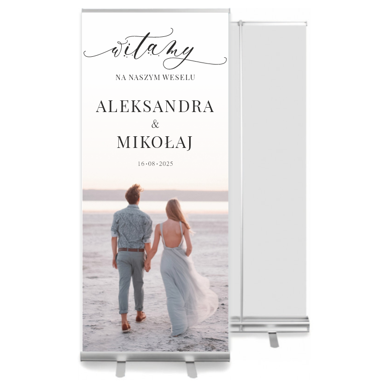 Roll-up ślubny 85x200 cm z personalizacją i zdjęciem – elegancki akcent na wyjątkowy dzień