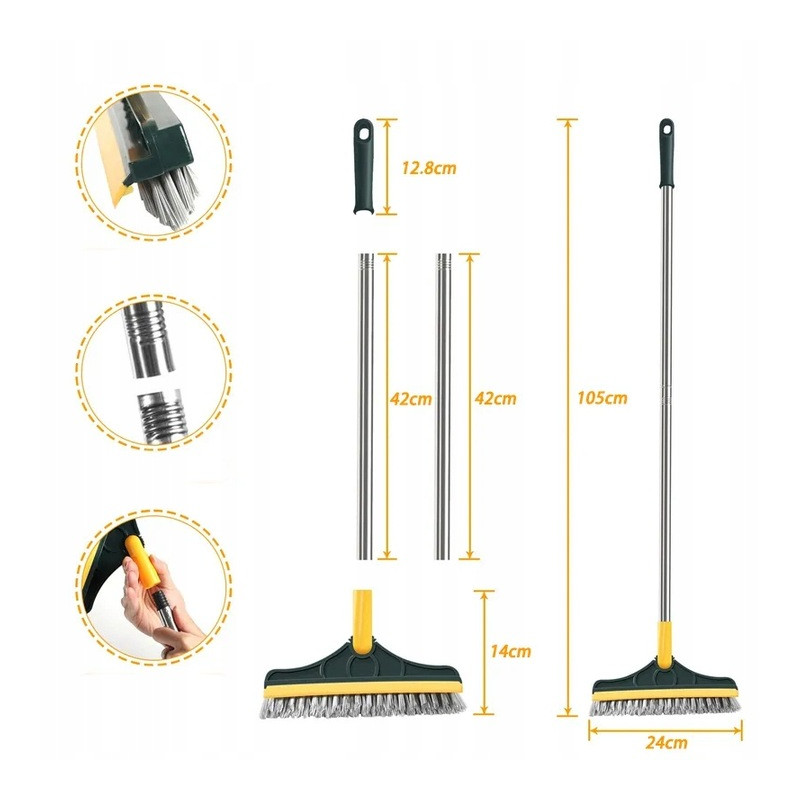 Zestaw szczotki z wbudowaną ściągaczką do wody to uniwersalne narzędzie do utrzymania czystości w każdym domu. Dzięki możliwości czyszczenia na sucho i mokro oraz precyzyjnemu designowi, szczotka z łatwością usunie brud nawet z trudno dostępnych miejsc.