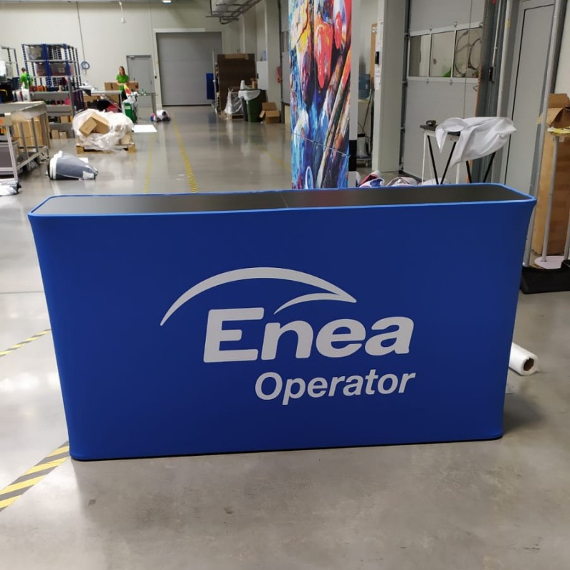 Duża, prostokątna lada reklamowa to rozwiązanie, które łączy przestrzeń ekspozycyjną z mobilnością. Lekka konstrukcja z aluminium i płyty meblowej umożliwia łatwy transport, a grafika na tkaninie z silikonowym brzegiem gwarantuje estetyczny i bezmarszczkowy wygląd. Torba transportowa zwiększa wygodę użytkowania, wpływając korzystnie na efektywność działań marketingowych. To niezawodne narzędzie, które sprawdzi się zarówno jako punkt obsługi klienta, jak i jako mobilne biuro marki podczas targów i eventów.