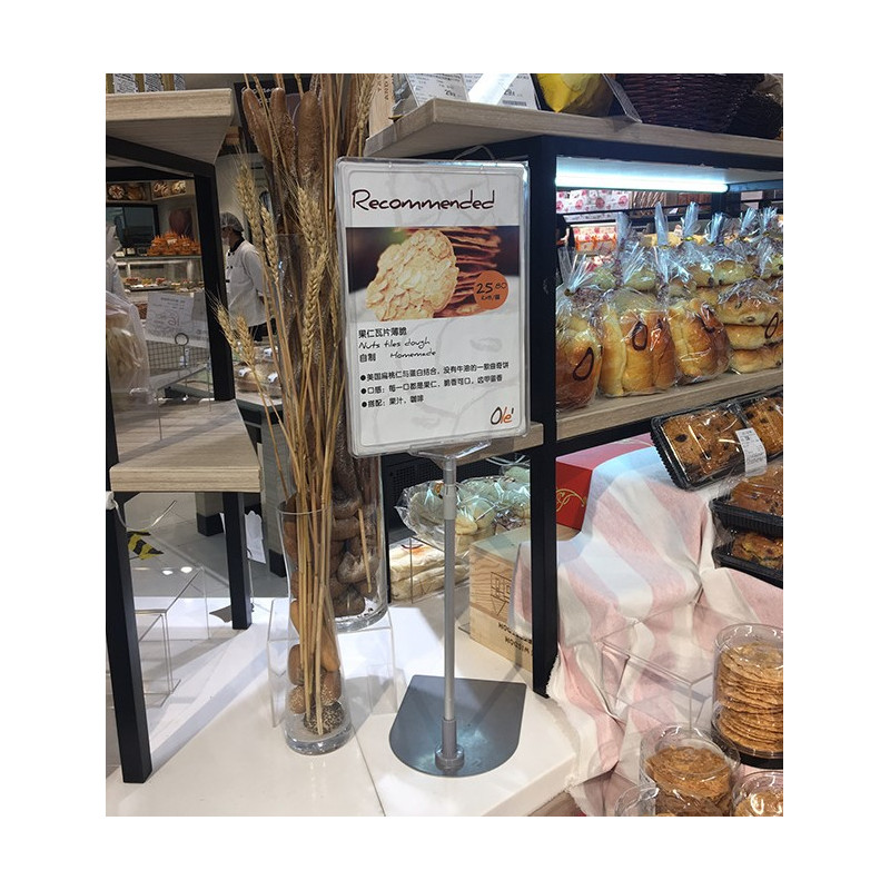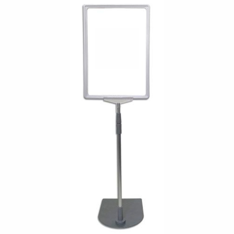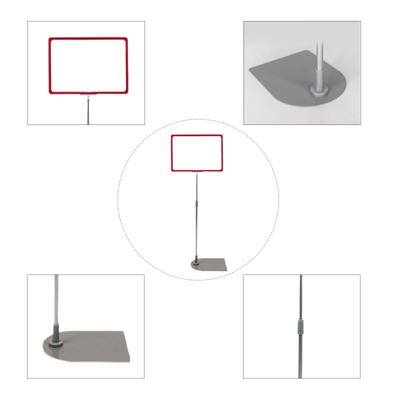 Stojak reklamowy typu cenówka charakteryzuje się wysoką funkcjonalnością i estetyką. Stabilna, metalowa podstawa gwarantuje pewne ustawienie, podczas gdy lekki, aluminiowy teleskop umożliwia szybką regulację wysokości bez użycia narzędzi. Szara ramka A4 pozwala na estetyczne i profesjonalne wyeksponowanie ceny lub informacji, a folia ochronna zabezpiecza materiał przed zabrudzeniem. Różne wersje kolorystyczne (transparentna, szara, czerwona) ułatwiają dopasowanie do identyfikacji wizualnej punktu, co wzmacnia wizerunek marki.