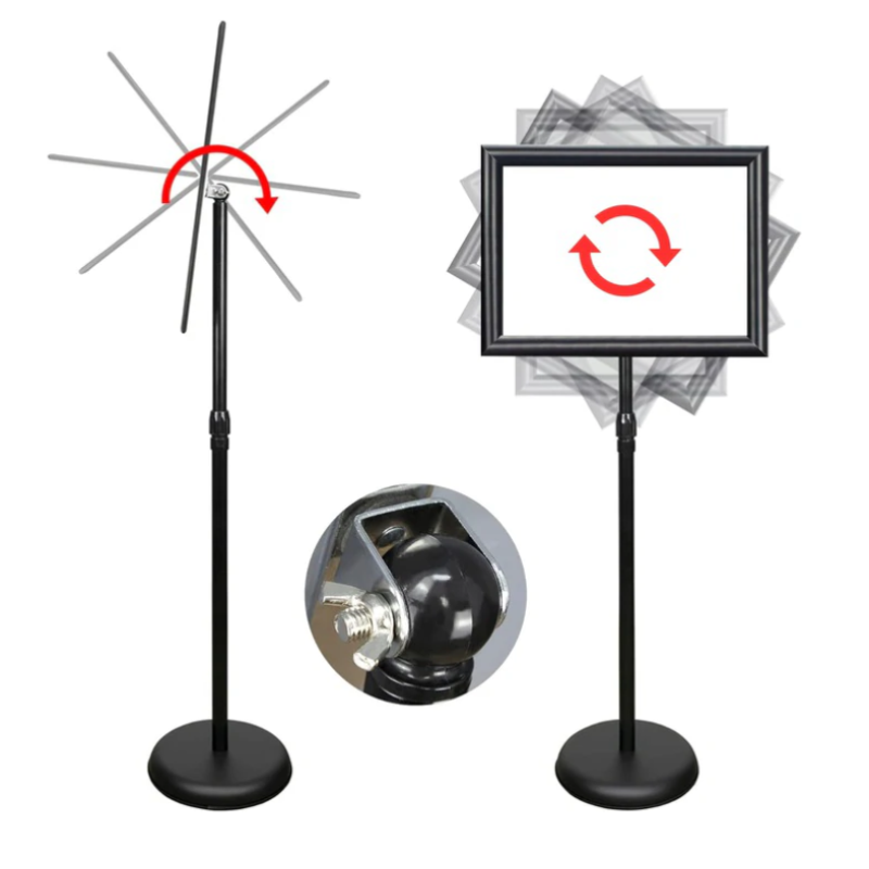 Stojak Menuboard A3 czarny to połączenie wysokiej funkcjonalności i minimalistycznej estetyki. Jego kompaktowa forma ułatwia ustawienie nawet w ograniczonej przestrzeni, a możliwość zmiany orientacji ramki pozwala dopasować treść do bieżących potrzeb. Wytrzymała metalowa podstawa i trwałe tworzywo ramki gwarantują długą żywotność, nawet przy intensywnym użytkowaniu. Transparentna osłona chroni materiały drukowane, zachowując ich czytelność i schludny wygląd.