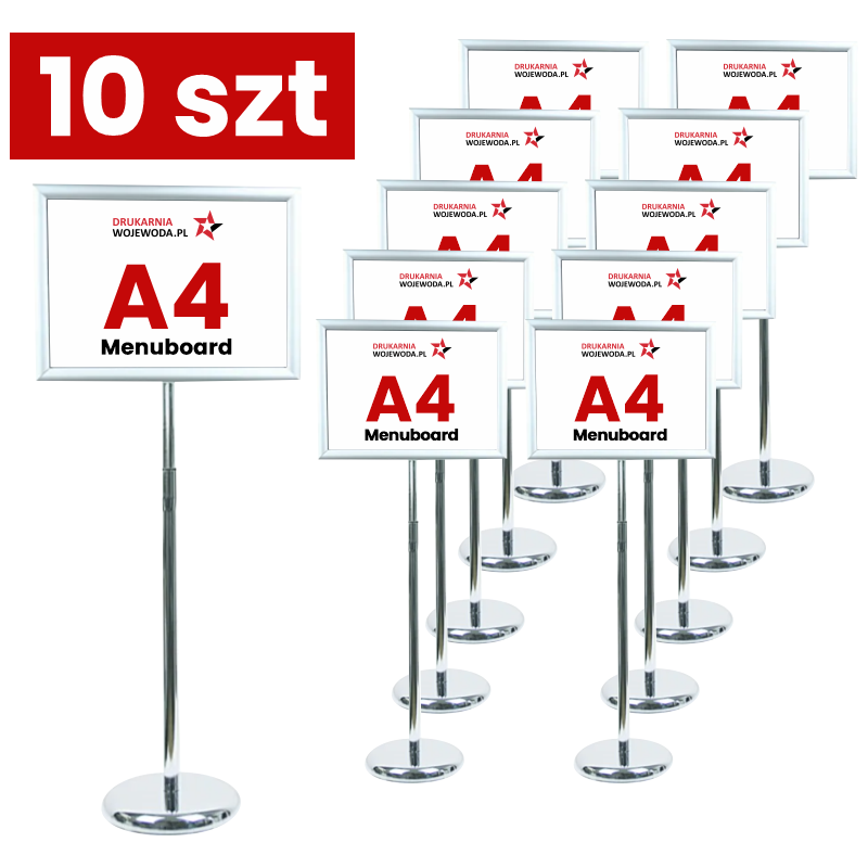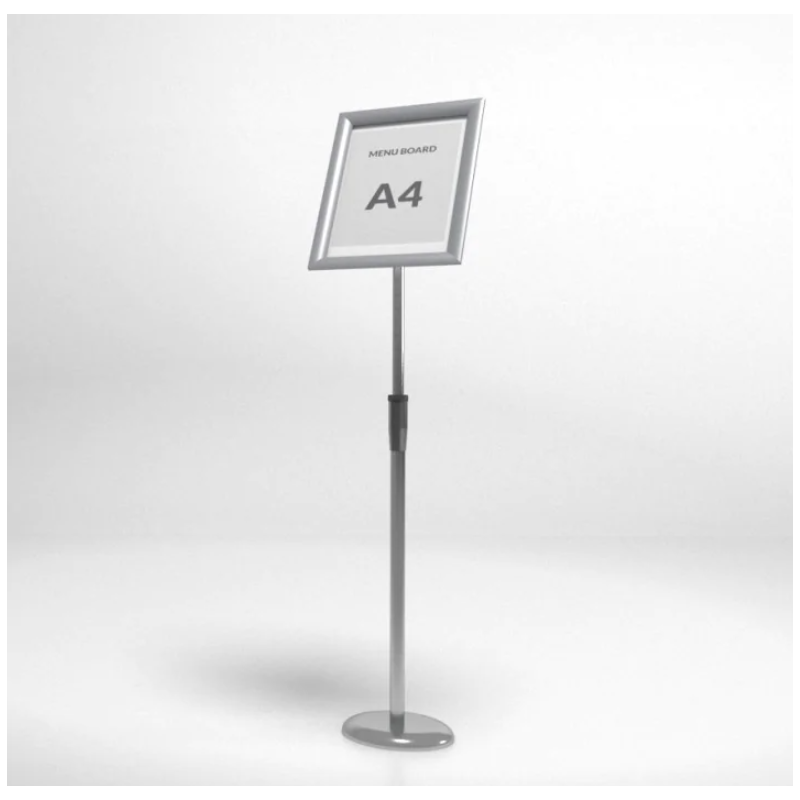 Stojak Menuboard A4 to połączenie wysokiej funkcjonalności i minimalistycznej estetyki. Jego kompaktowa forma ułatwia ustawienie nawet w ograniczonej przestrzeni, a możliwość zmiany orientacji ramki pozwala dopasować treść do bieżących potrzeb. Wytrzymała metalowa podstawa i trwałe tworzywo ramki gwarantują długą żywotność, nawet przy intensywnym użytkowaniu. Transparentna osłona chroni materiały drukowane, zachowując ich czytelność i schludny wygląd.