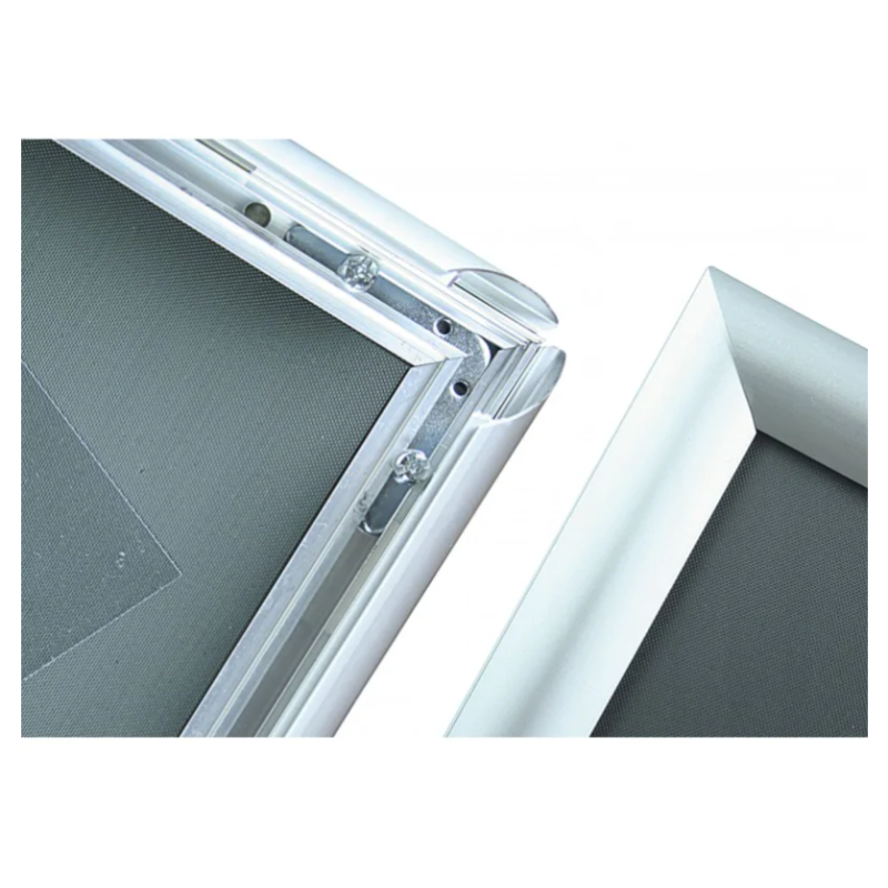 Aluminiowa ramka OWZ chroniona przez transparentną folię plexi — szybka i bezpieczna wymiana grafiki