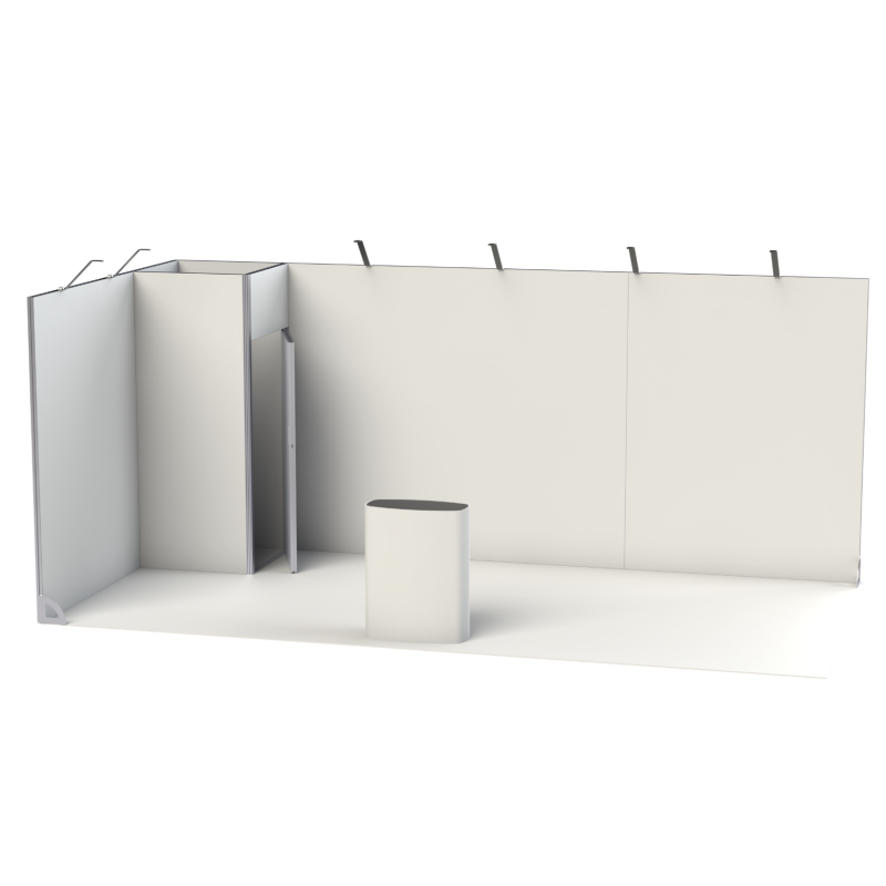 System ramowy Vector jest skalowalny, rekonfigurowalny i wielokrotnego użytku – idealny na targi, konferencje, eventy i prezentacje produktowe. Dzięki standardowym modułom w różnych kształtach i rozmiarach możesz w prosty sposób dostosować stoisko do kolejnych wydarzeń.