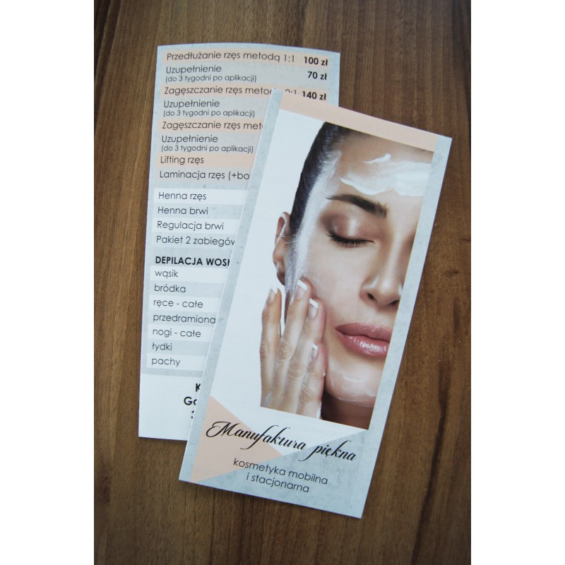 Ulotka jest składana na trzy części do formatu DL w "C" lub w "Z".