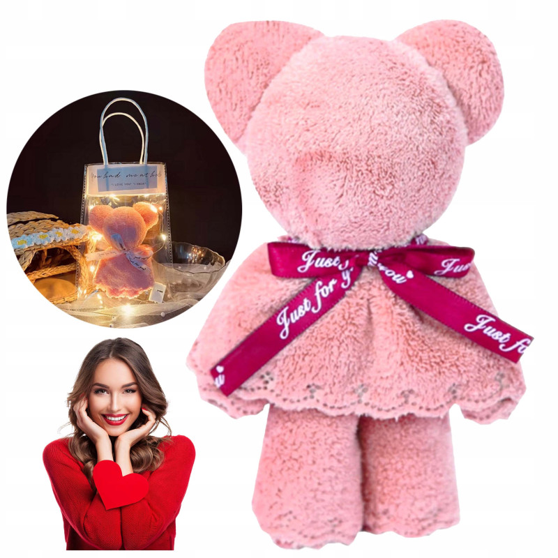 Ręcznik „Miś” to doskonałe połączenie estetyki i użyteczności. Po rozłożeniu spełnia swoją praktyczną funkcję, natomiast w formie misia stanowi efektowną dekorację i miły gest obdarowania. Delikatny materiał zapewnia komfort użytkowania, a oryginalne opakowanie podkreśla wyjątkowy charakter prezentu. To subtelny, a jednocześnie pomysłowy sposób na wyrażenie uczuć w eleganckiej formie.