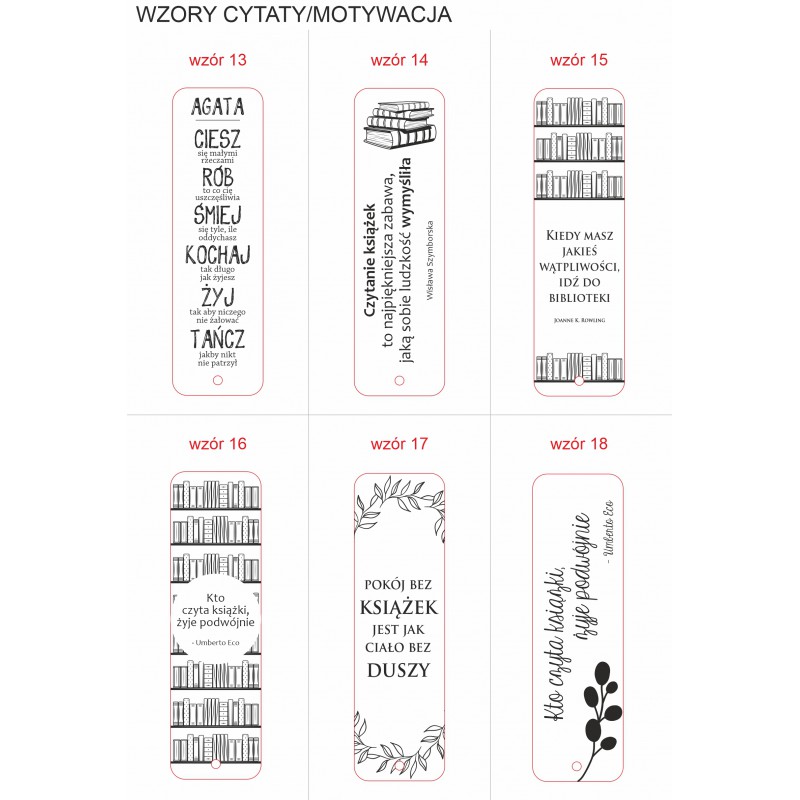 Drewniana zakładka z grawerem to oryginalny pomysł na prezent dla każdego książkoholika. Dostępne wzory pozwalają na całkowitą personalizację. Podaj nam odpowiednie imię, tekst, cytat, życzenia, czy cokolwiek sobie zażyczysz. Taki drobny prezent ucieszy osobę w każdym wieku - od najmłodszych po najstarszych. Za każdym razem podczas czytania książki, będzie przypominać o osobie obdarowującej i przywoływać miłe wspomnienia.