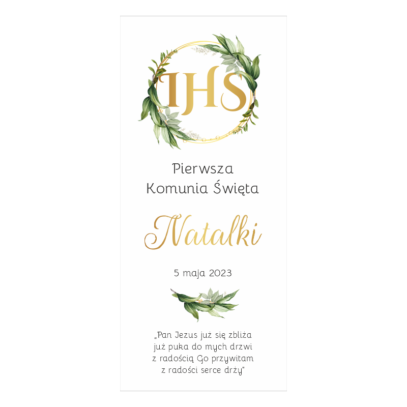 • X-Banner Pierwsza Komunia Święta 60×160 cm Liście Compact – elegancka dekoracja uroczystości