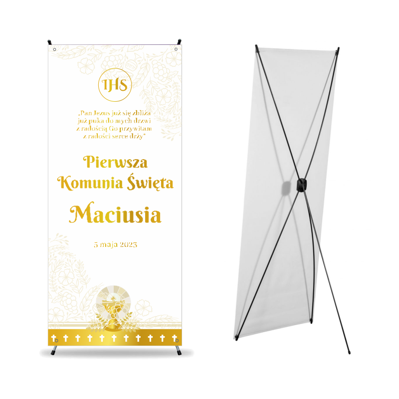 X-baner to przenośna reklama stojąca, która posiada rozkładany stelaż oparty na kształcie litery X, co czyni go bardzo stabilnym.